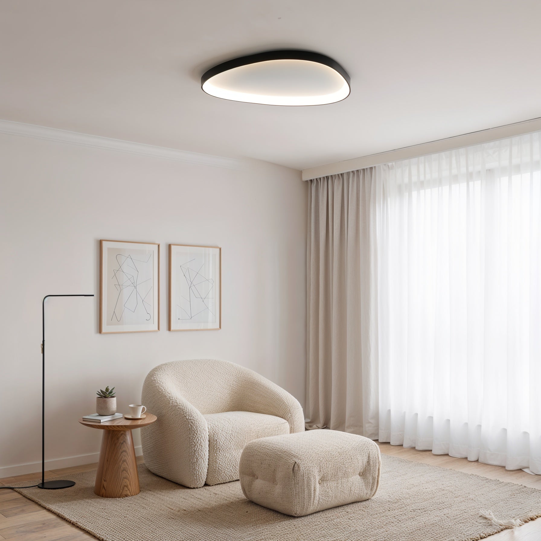 Ce plafonnier LED scandinave épuré est une pièce de design qui célèbre la simplicité et la fluidité. Son design, composé de formes organiques qui s'entremêlent, évoque la légèreté des nuages ou des galets, et apporte une touche de douceur et de sérénité à votre intérieur. La lumière LED intégrée, douce et puissante, se diffuse de manière uniforme, éclairant votre pièce avec une atmosphère à la fois chaleureuse et fonctionnelle. Disponible en finitions Noir ou Blanc, et en plusieurs tailles, il s'adapte parfaitement à une salle à manger, un salon ou une chambre.